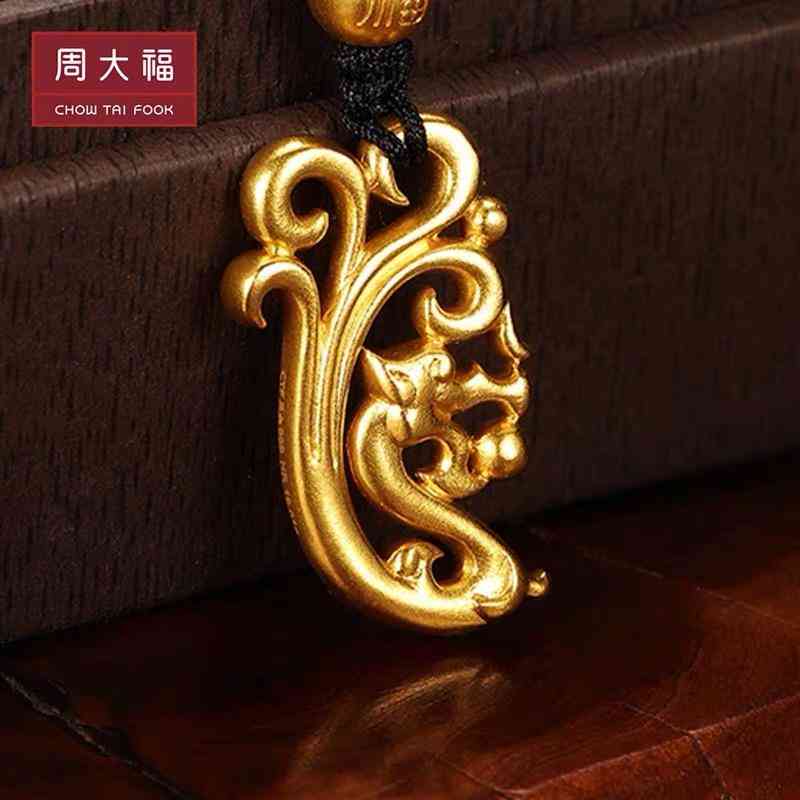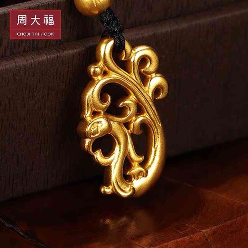 周大福飞龙在天古法黄金足金吊坠,灵感来源于东周团龙白玉佩造型,大气简约,精致典雅。图案自然清晰,层次丰富,栩栩如生。团龙是权势、高贵、荣尊的象征,有着吉祥寓意。