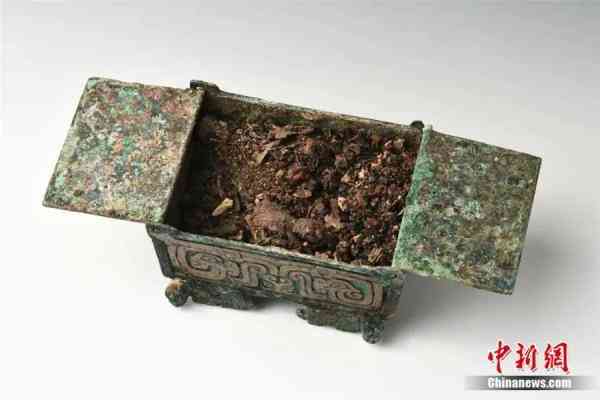 山西垣曲北白鹅墓地出土微型铜盒及盒内残留物。山西省考古研究院 供图
