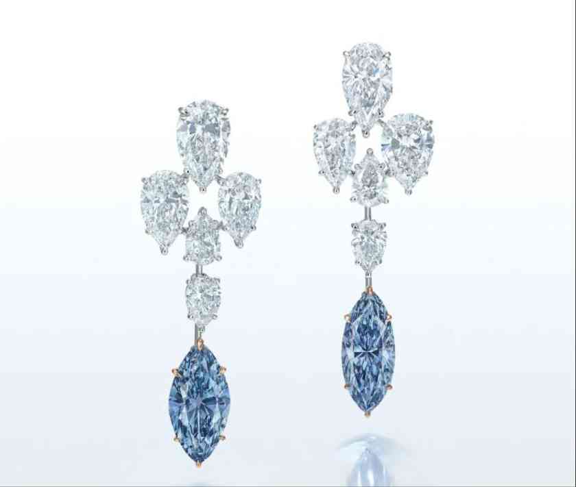 马眼形明亮式切割浓彩蓝色钻石各重3.29克拉