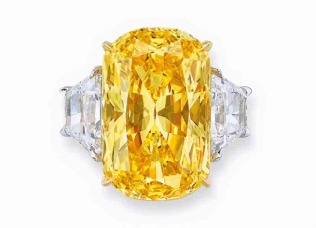 艳彩黄色改良矩形明亮式切割钻石重约18.08克拉