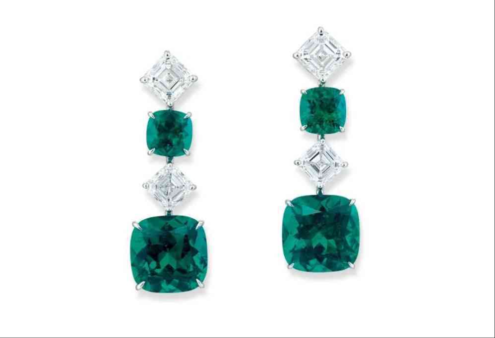 28颗枕形及八角形祖母绿共重约117.60克拉,最大颗重约10.41克拉