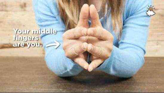 另外一种说法更加的感人一些,在网上流传更广——伸出两手将中指向下弯曲对靠,将其它的4个手指分别指尖对碰。大拇指代表父母,食指代表兄弟姐妹,小指代表子女,都可以分开;只有代表夫妻的无名指,是一辈子不分离的。很烂漫、很有想象力,但是太像一个钻戒文案了。