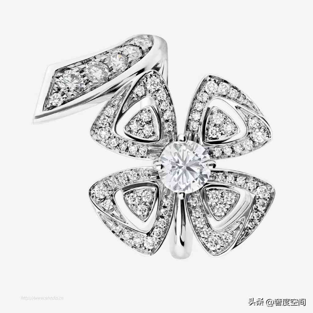 Bvlgari 的Fiorever系列灵感源自迷人的四瓣花朵,罗马人一直将其视为幸福和欢乐的象征。Fiorever 融合了两个意味深长的词,意大利语中意为“花”和“永远”,Fiorever 以自由奔放、充满激情的设计颂扬了罗马人对生活的热爱。镂空花卉图案的不对称设计赋予其现代外观,珍贵的花卉图标以最高品质的钻石制成,花冠旨在闪耀永恒的光芒。