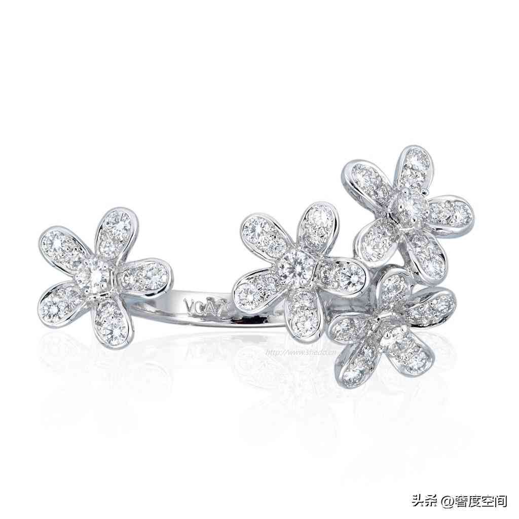VAN CLEEF & ARPELS钻戒的这个系列叫指环之间的苏格拉底,采用 Entrée Door 环状的开放式结构,并配有其标志性的可爱的小野花。 设计灵感源自据称是当归的野花, 内衬白金和钻石小花,营造出浪漫的外观。 把它融入你的装扮中,活泼的造型会让所有人的注意力集中在你自己身上。