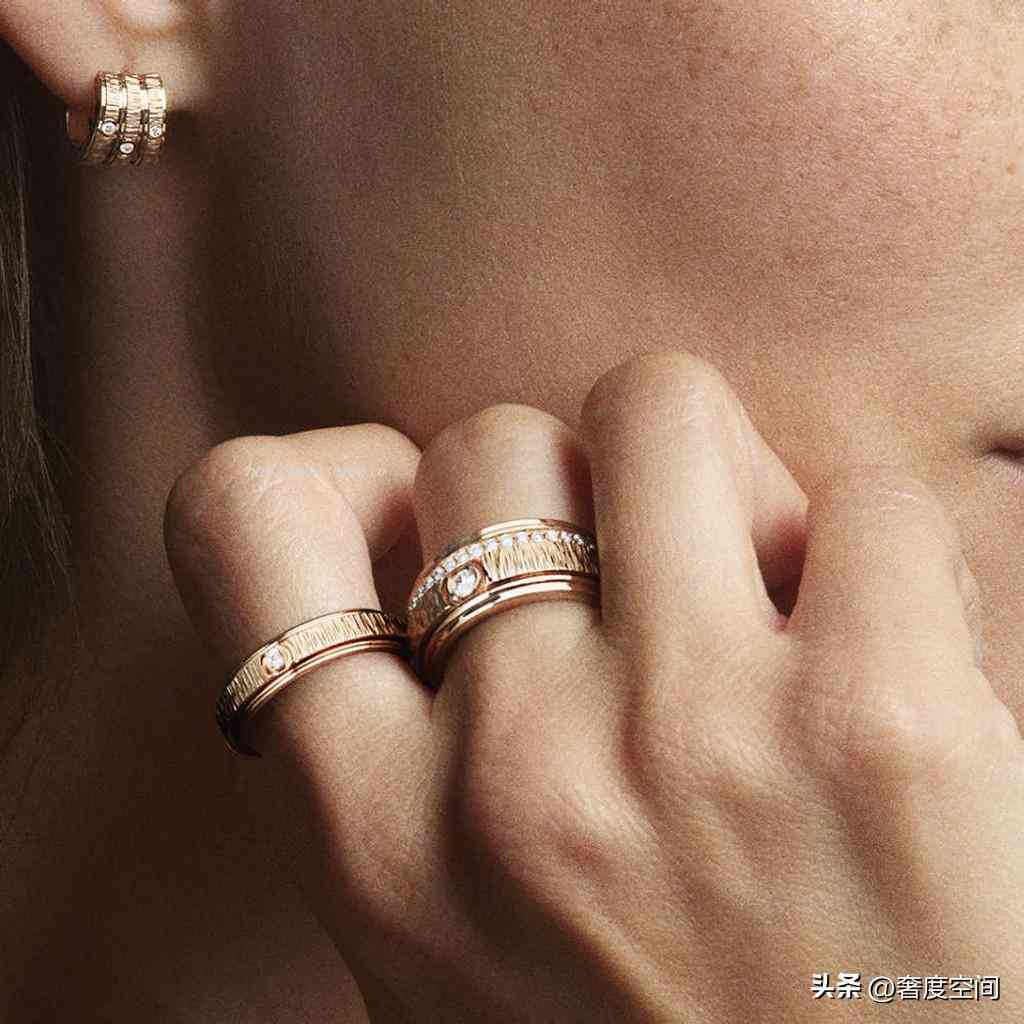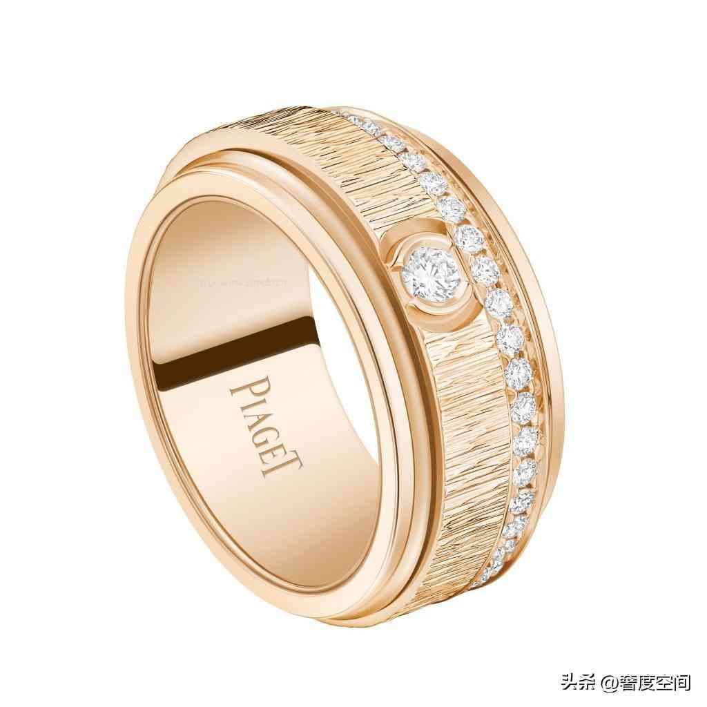 这款玫瑰金钻石戒指尽显伯爵风格,汇集了伯爵的精髓:黄金专业知识、宝石镶嵌技艺。戒指有四排金色,两排抛光,一排镶嵌 45 颗明亮式切割钻石(约 0.50 克拉),一排使用宫廷装饰技术雕刻,并由单颗 Possession 镶钻美化。伯爵的“Possession”系列还采用灵动的旋转结构,让人忍不住想去触摸把玩它。