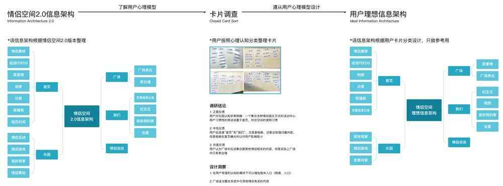 通过卡片分类调查定位设计模型与用户心理模型的差距,为架构调整提供参考。