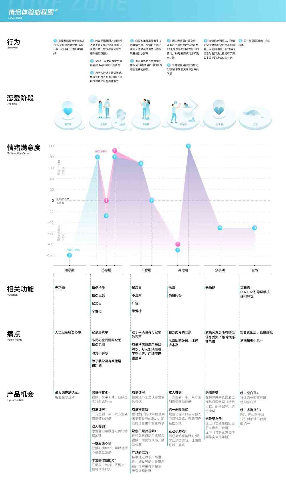 为此我们改造了强调全局观察的服务设计工具「用户体验旅程地图」,绘制以下「情侣体验旅行图」。
