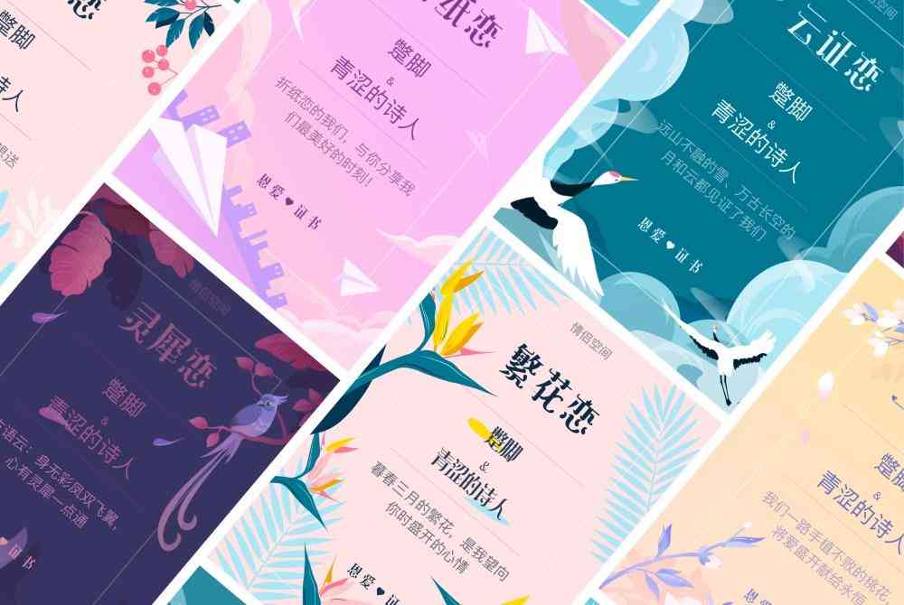 类比现实生活中的结婚证书,很多人对民国结婚证书会心向往之,是因为透过隽永的证词、寓意美好的图样、优雅的手写字、丰富的版式,观者体验到的正向情绪刺激远高于一份批量生产的证书。在设计恩爱证书时,我们力求从多维度将美好的爱情融入到设计中,唤醒用户强烈的共情。