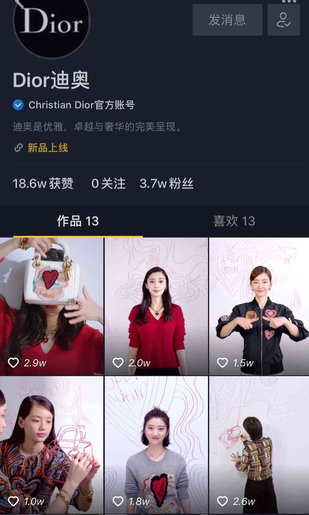 今年,Chanel在一个加V的抖音号上连续发布十几秒的抖音定制版短视频。狠拼流量的Dior索性在抖音上开了官方账号。