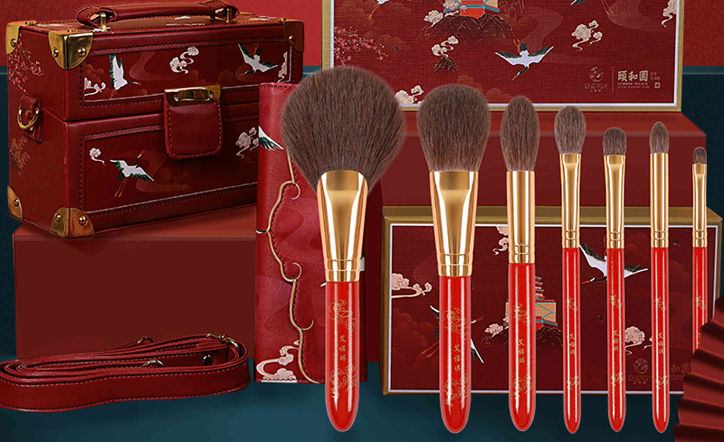 琴制是一众沧州化妆刷品牌中较早形成风格的品牌之一。刷毛、口管、木柄几乎都是黑色或灰色,产品图的背景会是一把折扇、一枚胭脂盒或是一幅水墨画,品牌名称的字体用的是华康金文,这是一种以战国时期中山国所出土方壶上金文重组的字体,线条清秀。