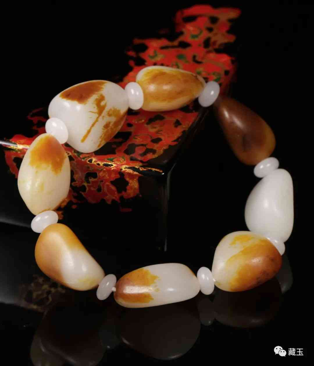 这块料子据说是15万买的,它最后被奢侈地做成了珠子手串,也就是下面这个样子: