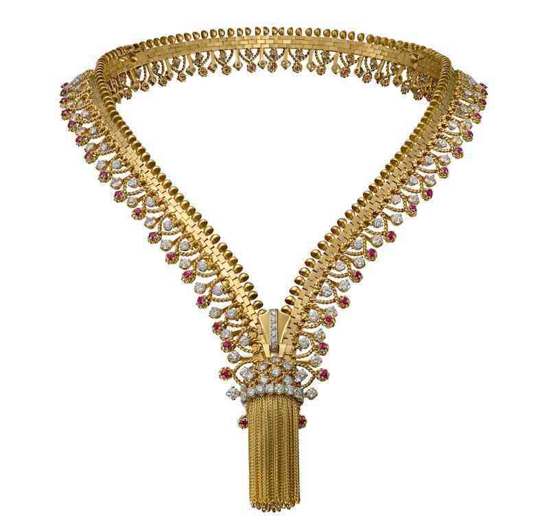 要从300多件展品中选择一件真的很难,如果真的要选的话,我会选择展览主视觉上的那件ZIP项链。为什么选择ZIP呢?因为这件作品从生活物件到珠宝,从项链到手环之间做了一个非常好的结合。乍一看这是一件项链,但是通过拉链的设计,可以变幻形态,变成一件手环,这种可变幻的珠宝,在诞生之初打破了很多传统规则,是富有先锋精神的。这种先锋精神赋予了作品完全不同的生命力,至今梵克雅宝也持续不断地在打造ZIP项链。所以你会看到,这件ZIP项链出现在了此次展览的海报上。
