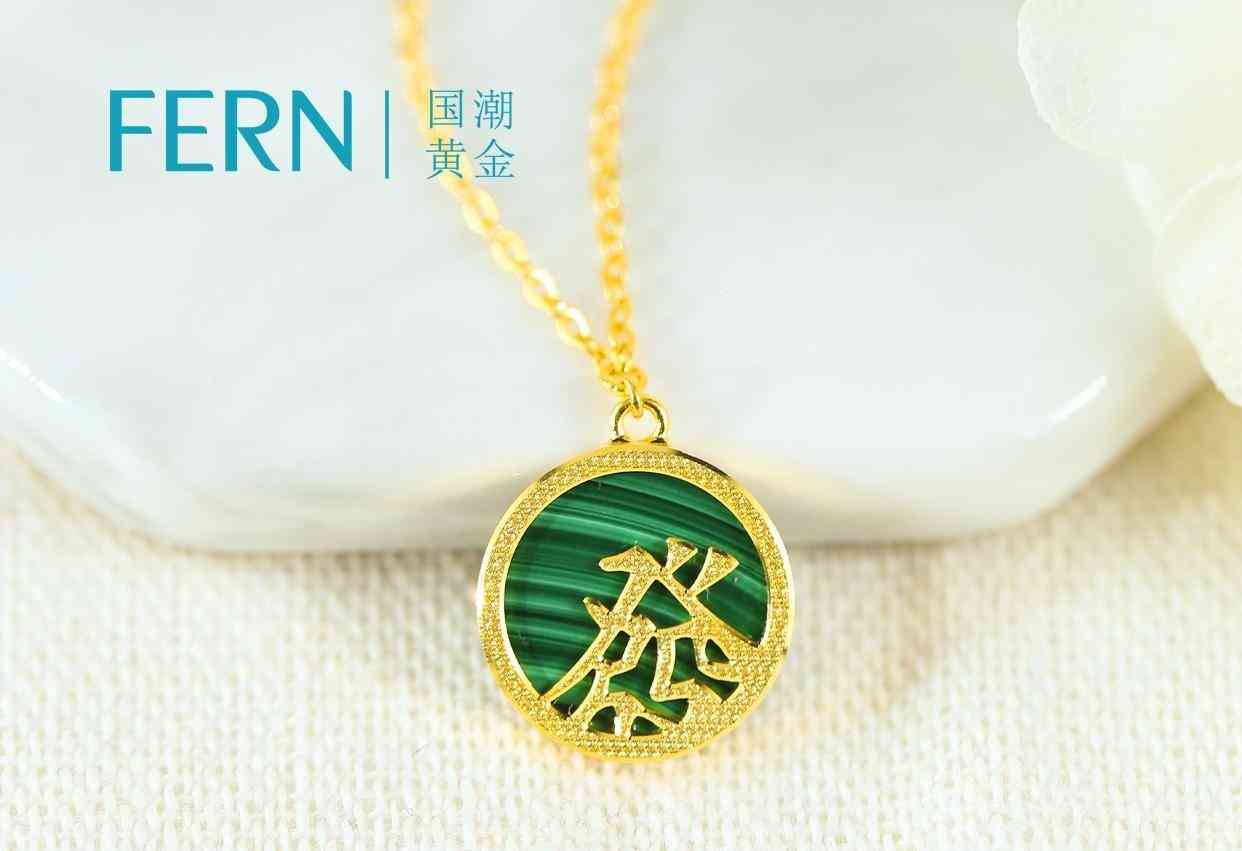 简洁的汉字造型——“发”,项链中间点缀一颗小钱币,寄托美好心愿,承载财源广进,财运不断的祝福,采用.5D黄金工艺,结合富有高级质感的喷砂,融合低温渐变珐琅工艺,呈现出亮丽、特别的黄金项链,细节丰富,造型别致,给新年一份美好祝福吧。