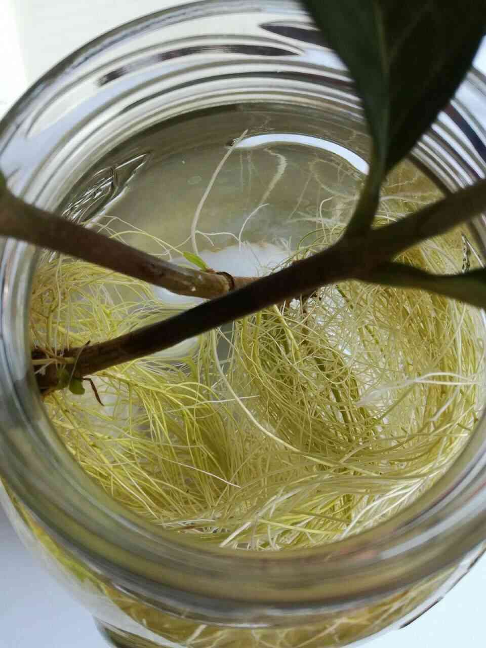 栀子花的枝桠,在水里长了疯狂的根。一个普通的玻璃罐子呀,比土养的还好。