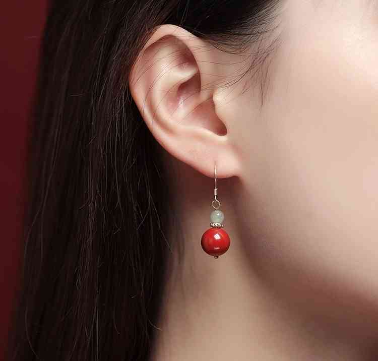 这款朱砂耳坠是很简单大方的古风设计,有紫金砂、帝王砂两款可以选择,其中紫金砂款,偏暗红的颜色更显气色,搭配旗袍是简约又温婉的美。耳钩选用的也是S925纯银,不用担心过敏可以放心佩戴。