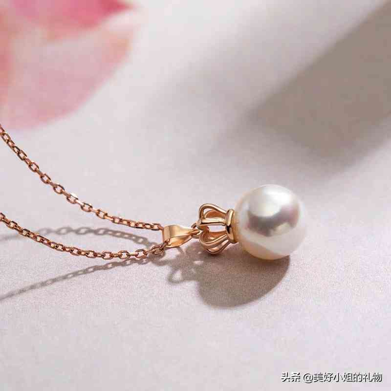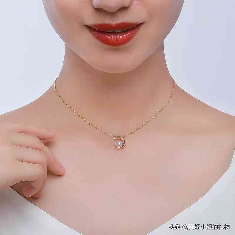 和上面那款珍珠项链相比,这款珍珠吊坠主打的是设计,一轮明月上搭配一颗纯净的珍珠,简单优雅,看起来又很唯美。珍珠精选合浦南珠,圆润有光泽,再搭配18k金和钻石配件,整条项链简单大方又很有设计感,适合比较年轻一点儿的妈妈们。