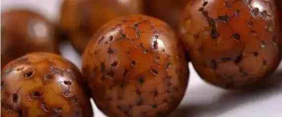 老星月菩提佛珠,酥透油润的表面会出现丰富的裂纹,犹如瓷器釉层中美丽的冰炸开片,佛珠表面更会变为金珀般的半透明状,润泽奇绝。
