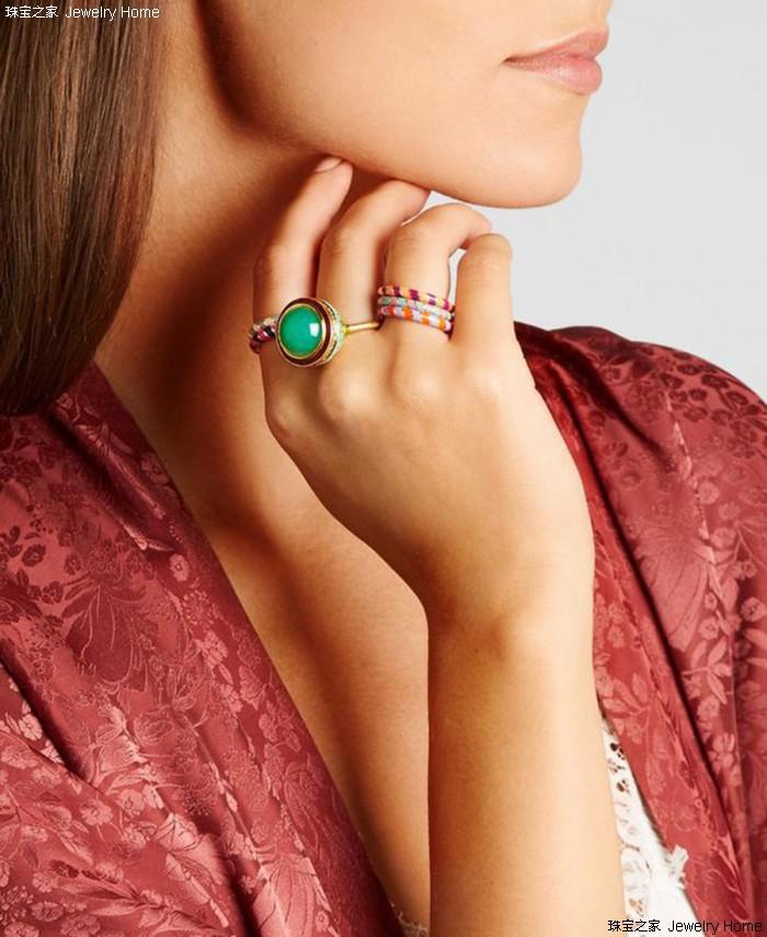 Alice Cicolini 手工制作11克拉黄金戒指, 珐琅,镶饰一枚绿玉髓,售价:£ 6,725
