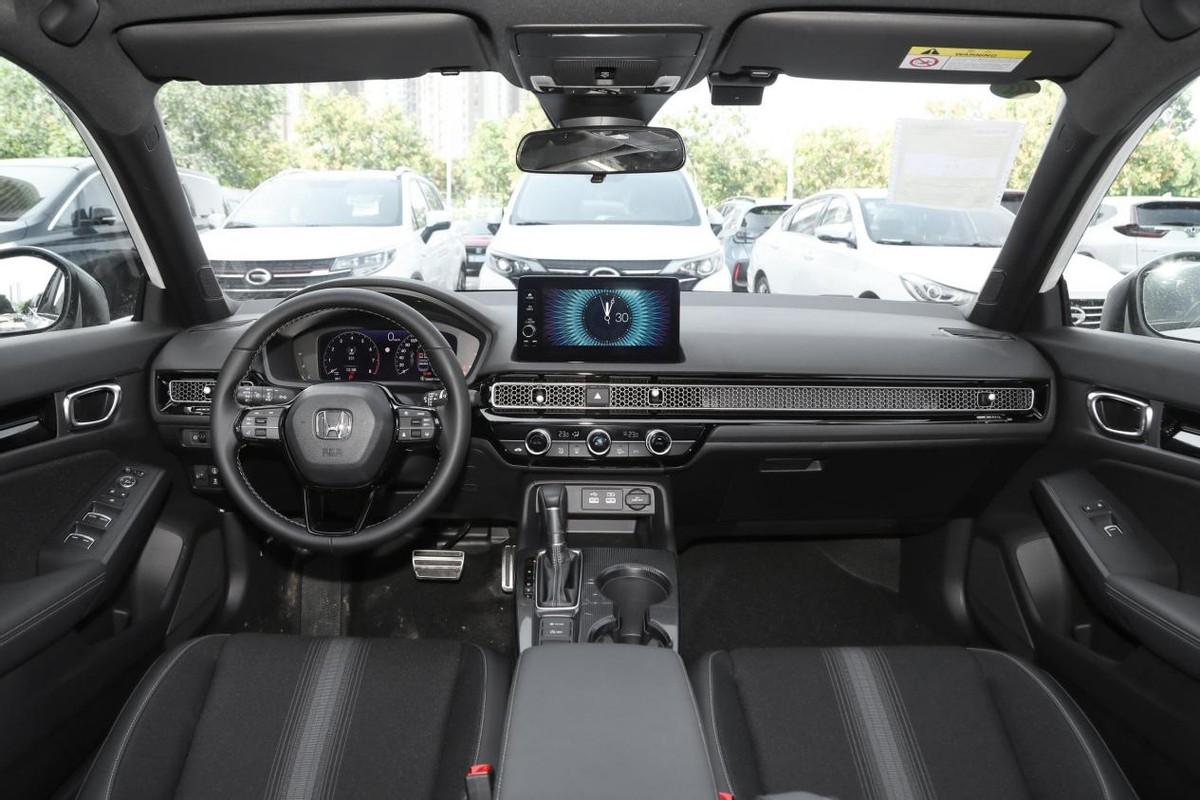 内饰整体的改变可以说是“脱胎换骨”,虽然内饰用料依旧是硬性塑料材质,但不得不承认,11代思域的内饰相比10代更有设计感。仪表台采用常规T型布局,前排空调出风口采用横向贯穿设计,并辅以银色蜂窝饰板和黑色钢琴烤漆,看起来精致许多。三辐式方向盘的造型有些类似于宝马丁字裤的设计,外观真皮兼顾着不错的细腻感。240TURBO版本标配10.2英寸全液晶仪表盘,9英寸中控多媒体屏幕则是全系标配,搭载.一代Honda Connect车机智联系统,支持车联网和远程升级功能,手机互联支持百度CarLife;如果能够加入苹果CarPlay,我觉得这套车机系统会更加完善。