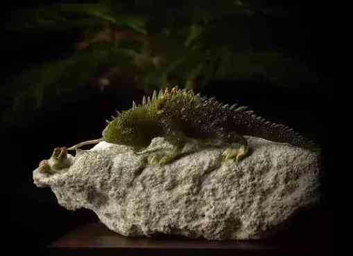 5、甲翠。甲翠主要出产在岫岩的三家子镇、大房身镇等地,是岫玉的一个特殊品种,因其和翡翠有几分类似,所以开始叫“假翠”,后来觉得假字不太好,慢慢演变成“甲翠”,也有人叫岫翠。甲翠基本不透明或微透明,以绿白色相间为主,尽管甲翠颜色只有两种,但是给人的感觉是简朴而又不单调。因此,用甲翠雕刻的一些仿古的瓶、鼎、炉、熏等摆件别有一番汉风古韵,形成了岫玉雕刻大家庭中的一道亮丽风景。