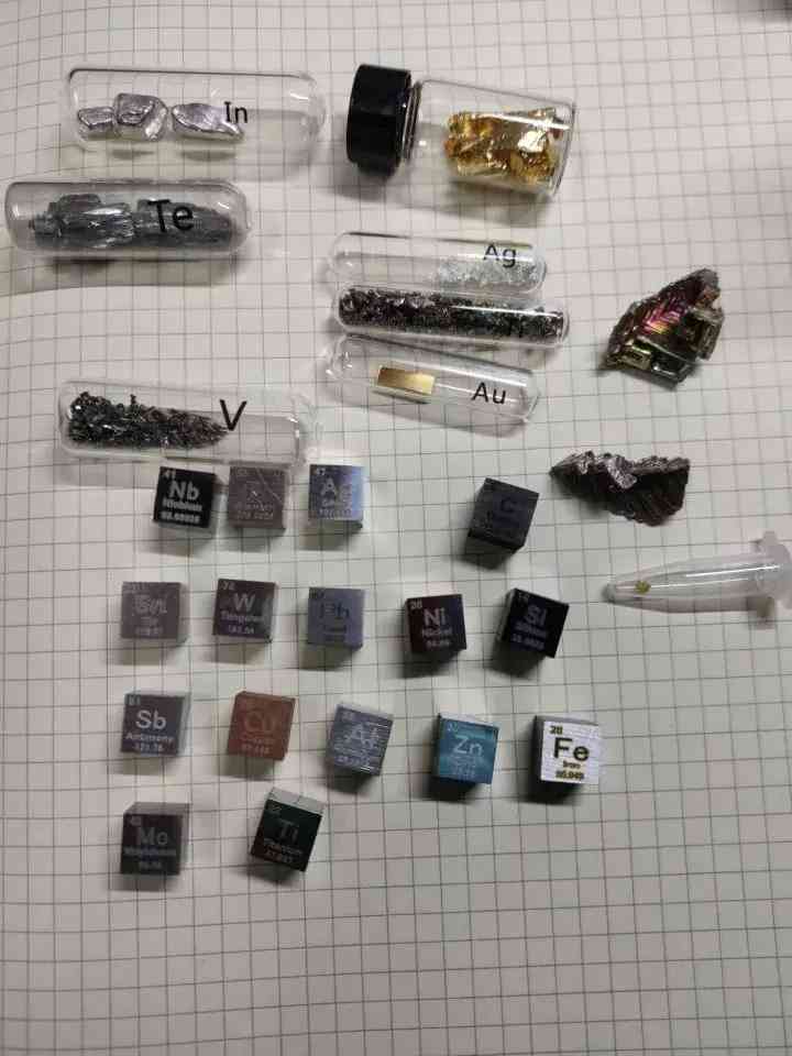 并不是所有元素都能收集到:核素很难收集全;还有95~118号元素是人造元素(共24种),这些元素自然界就没有,你要是有克级的,分分钟全世界的核物理学家都来你家围观。毒性、放射性、爆炸性等危险元素单质:比如铊(Tl)、汞(Hg)有毒;镭(Ra)、铀(U)等;碱金属容易燃烧爆炸…这类管制物品难弄。价格和质量成正比。化学元素单质的外加属性也很重要:比如纯度、制作商、外形、晶型等。化学元素收藏圈比较小众,有很多东西可遇不可求。总而言之,真正能收集到的也就90多种,买化学元素就是需要砸钱,如果你就图个收集的乐,一般几千块就能收集到大部分的样(量很少)。