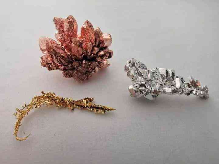 ▲金、银、铜晶体,这种有艺术感的金属晶体,其价值在一定程度上能高过这个元素本身!图源:Infinity