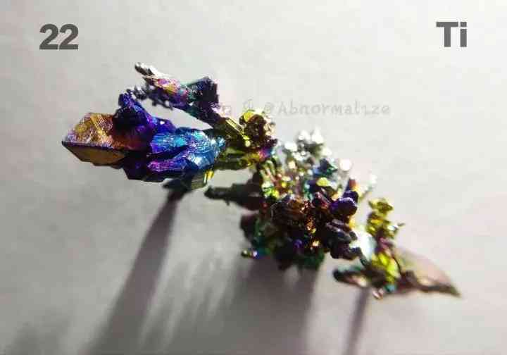 ▲普通的金属钛就是银白色的,但是这个是个晶体钛,并且表面氧化成五颜六色的,相当有趣!图源:Abnormaliz