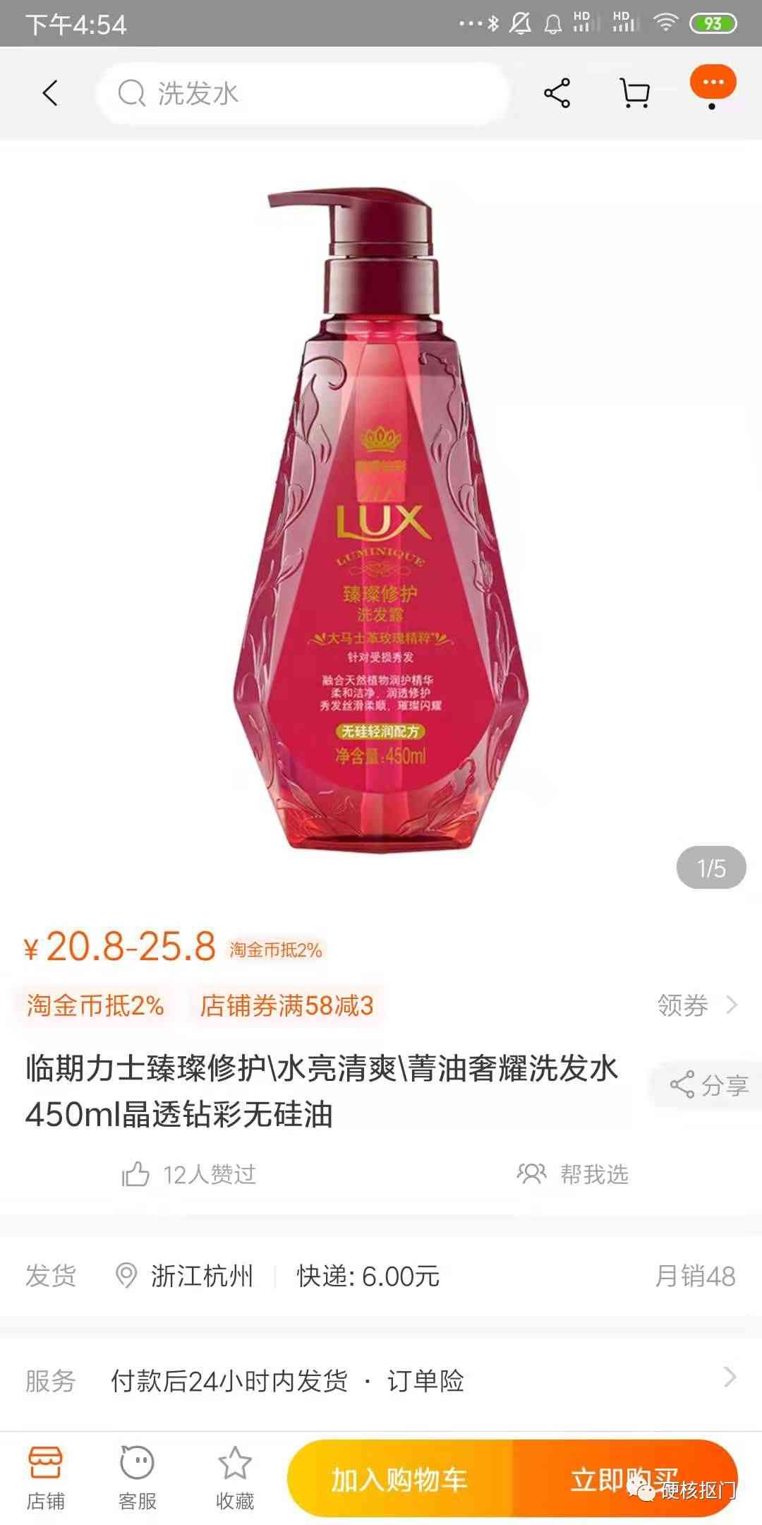 拿这个力士洗发水来说,猫超打完折45.9元。而这个保质期还剩四个月就直接五折。不要囤货,四个月分分钟用完了。