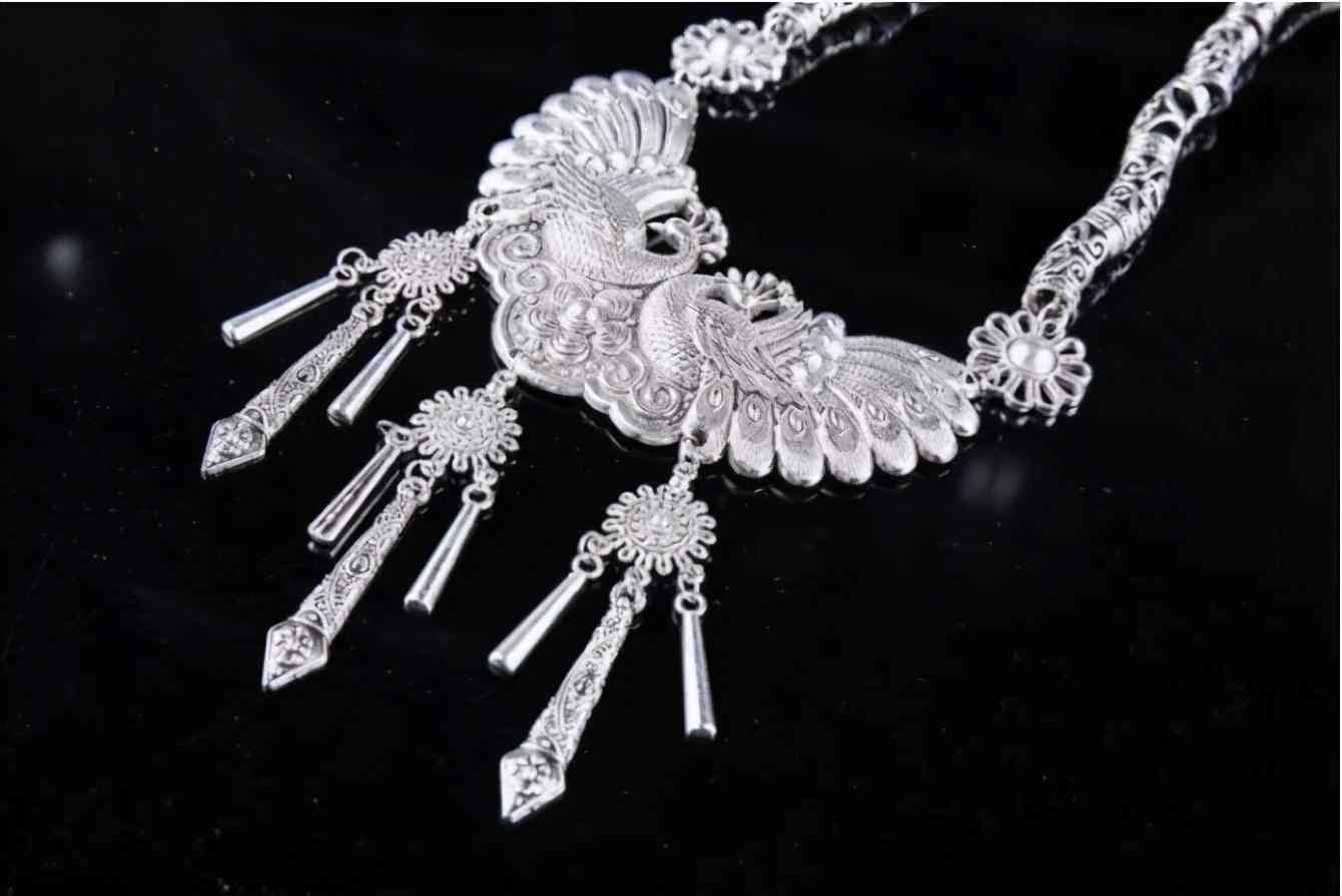 苗银来自于苗族,苗族特有,银含量只有约40%,主要成分为白铜或黄铜,通过电镀、加蜡、上色的工艺处理,价格比较低,而且现在市面上的很多苗银几乎不含什么银了。