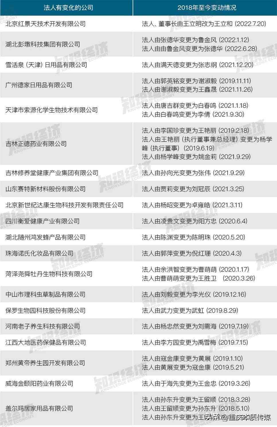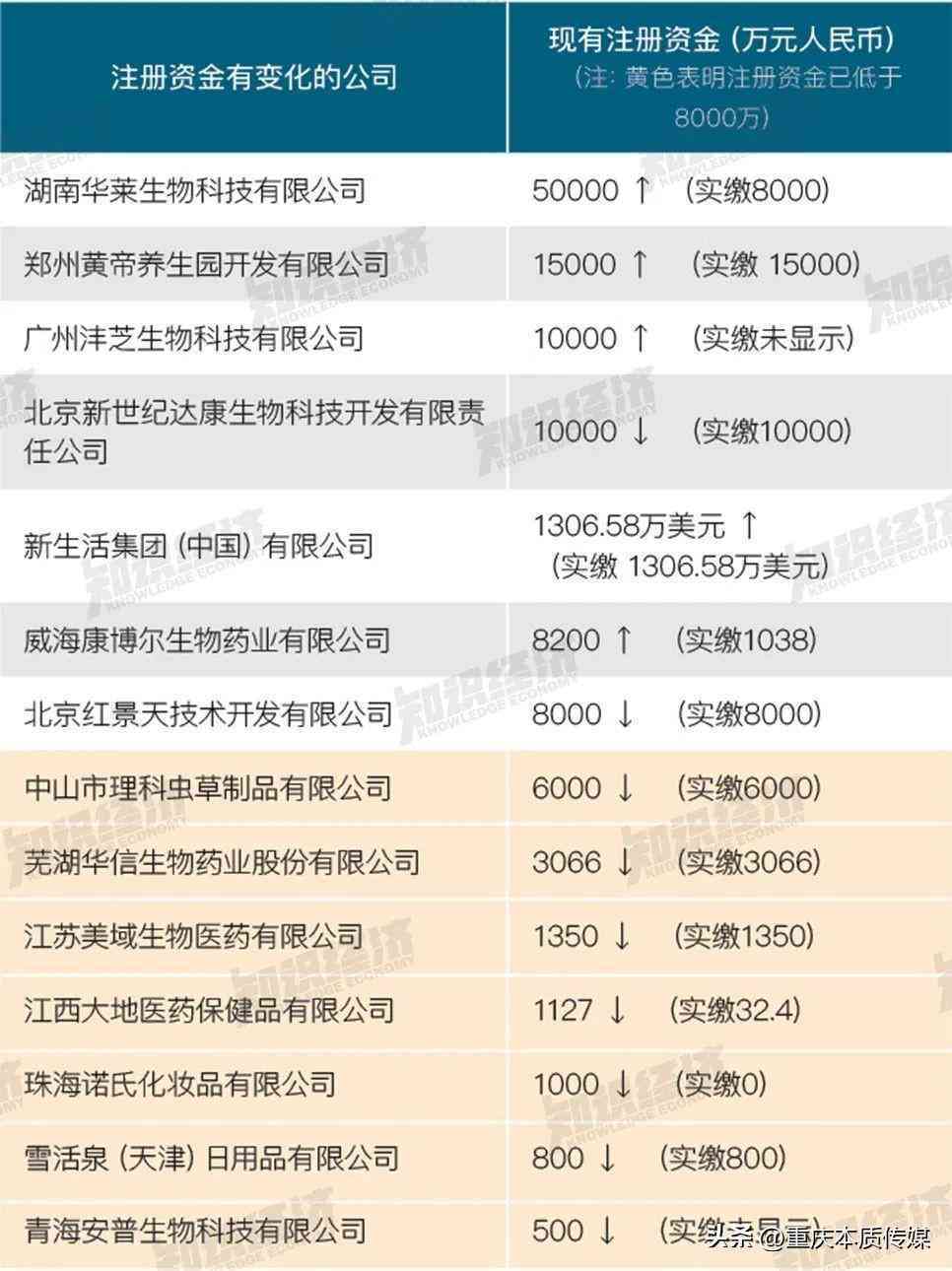 《知识经济》观察到,有4家企业更改了企业名称,其中,康缘美域(现更名为:美域生物)、雪薇诗澜(现更名为:雪活泉)2家企业还减少了注册资金。