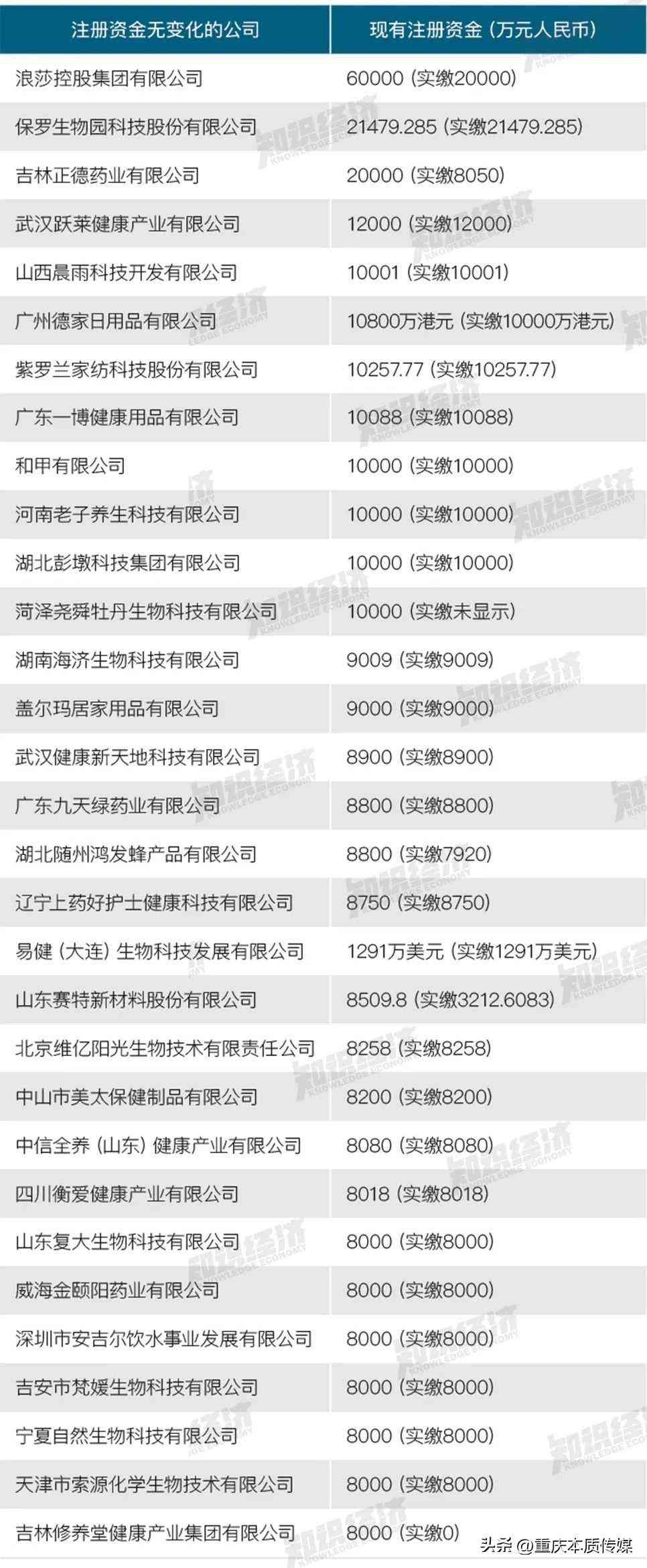 实缴金额:45家企业中,3家企业未显示实缴金额,10家企业实缴金额低于8000万元,此外值得关注的是修养堂、珠海诺氏2家企业实缴金额为0元。