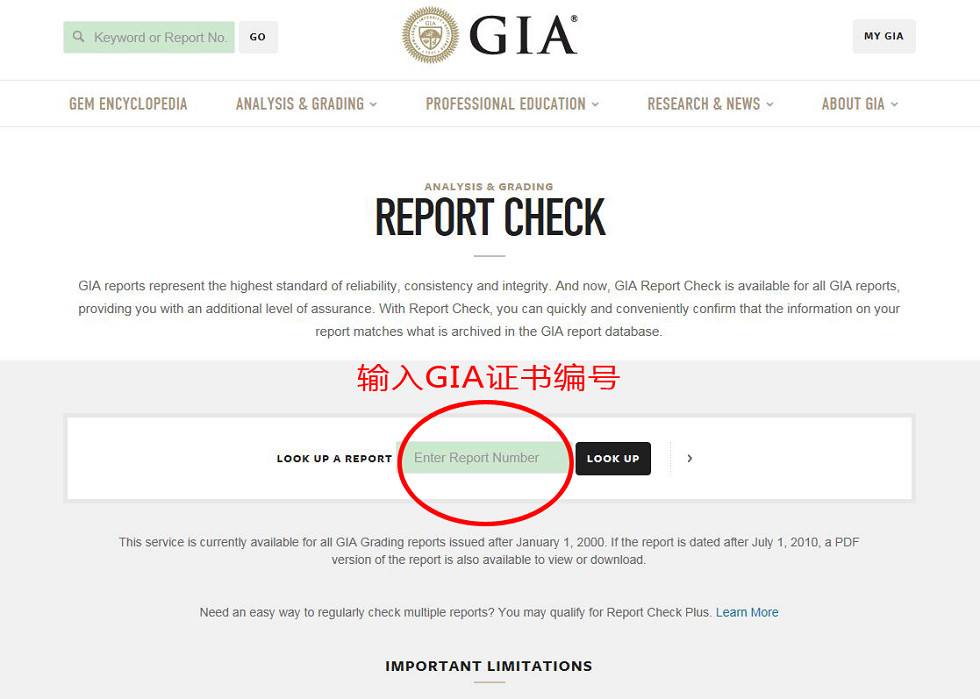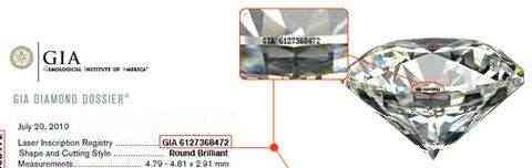 GIA证书可以通过刻在钻石腰部的激光编码和钻石的大小在其官网上查询,目前国内的多家钻石专业网站也都有GIA证书的查询链接。