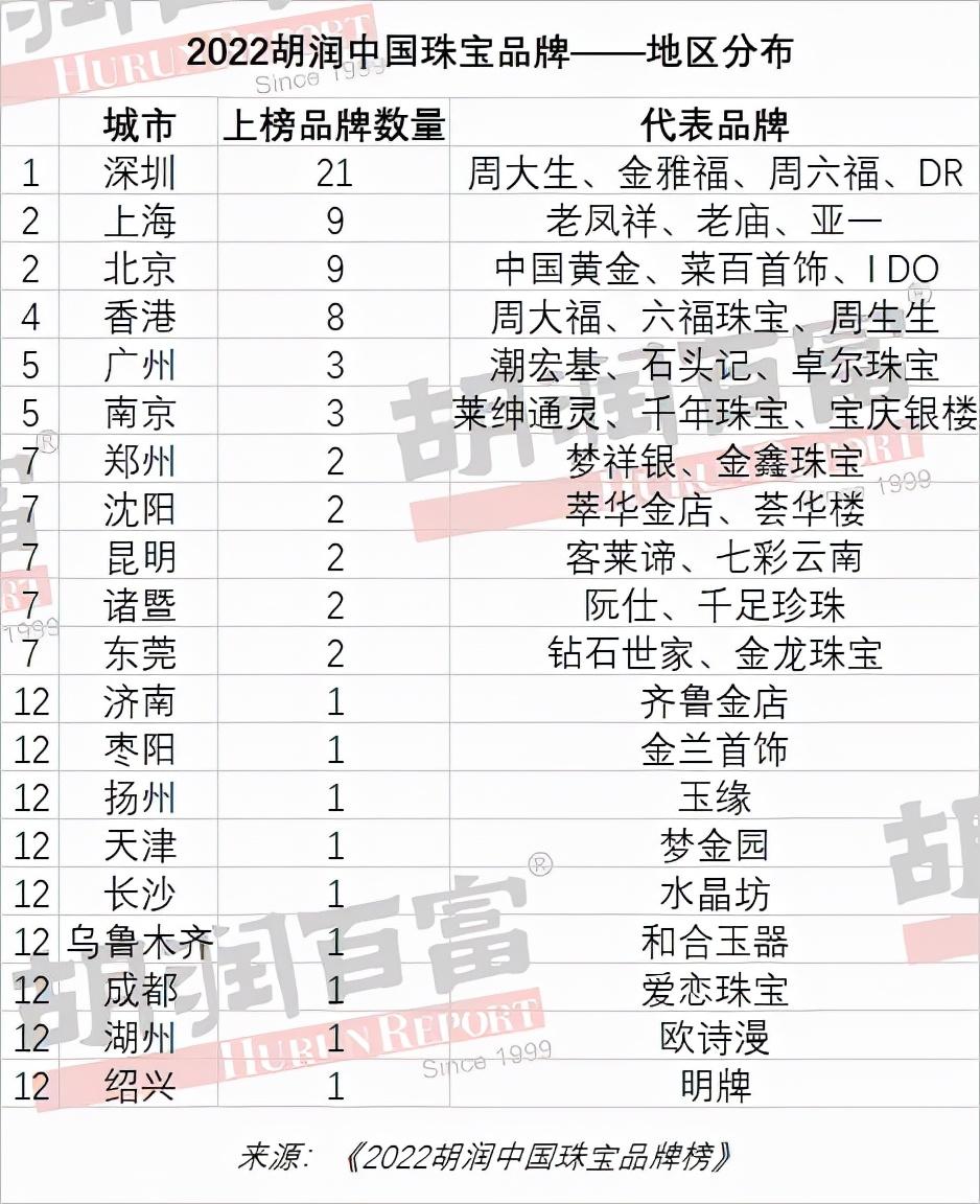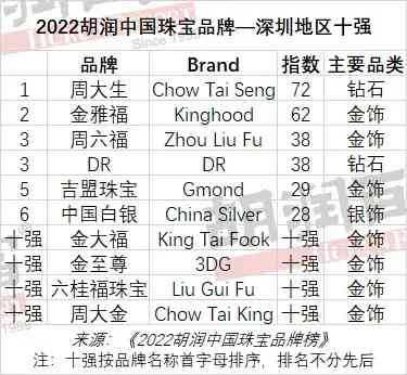 2022胡润中国珠宝品牌—深圳地区十强