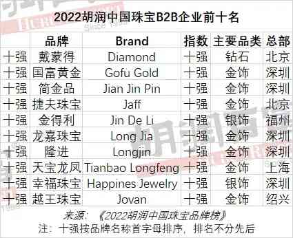 2022胡润中国珠宝B2B企业前十名