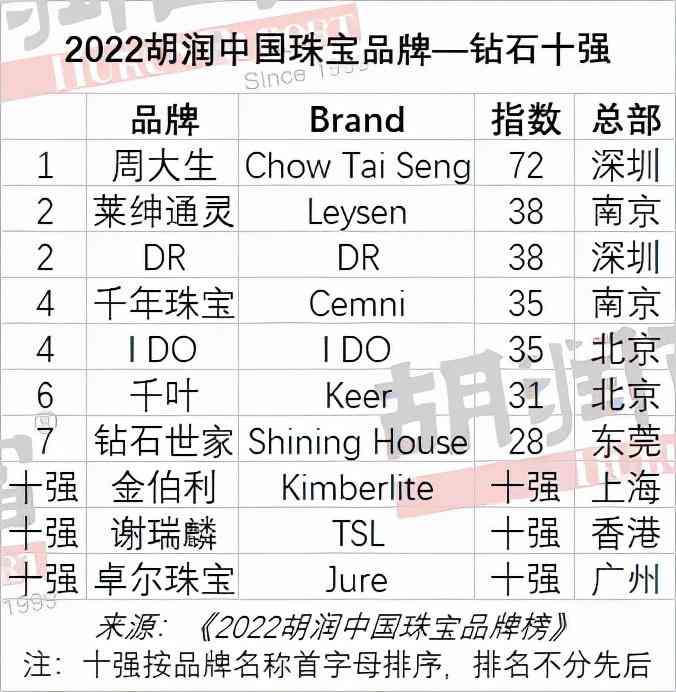 2022胡润中国珠宝品牌—钻石十强