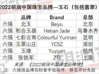 2022胡润中国珠宝品牌—玉石(包括翡翠)