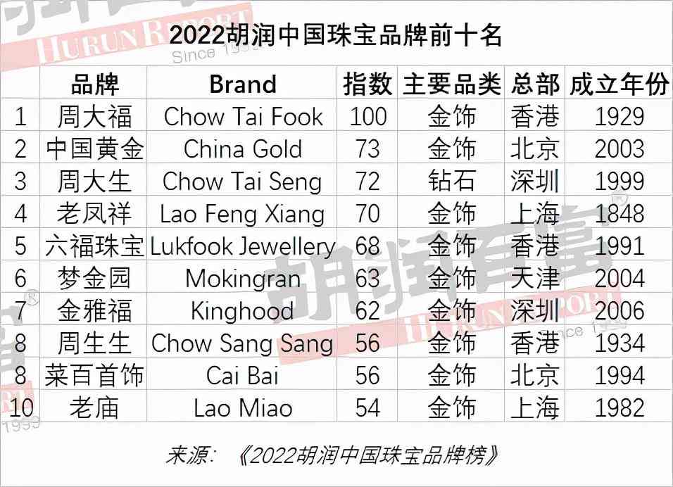 2022胡润中国珠宝品牌前十名