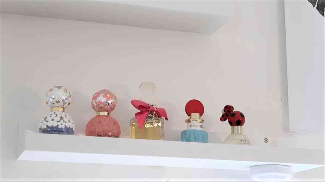 一个置物架上我放了几瓶香水