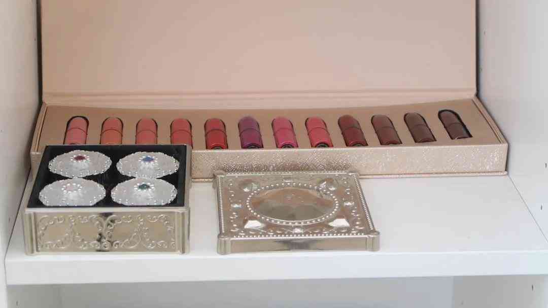 柜子的.层放的都是一些口红套装