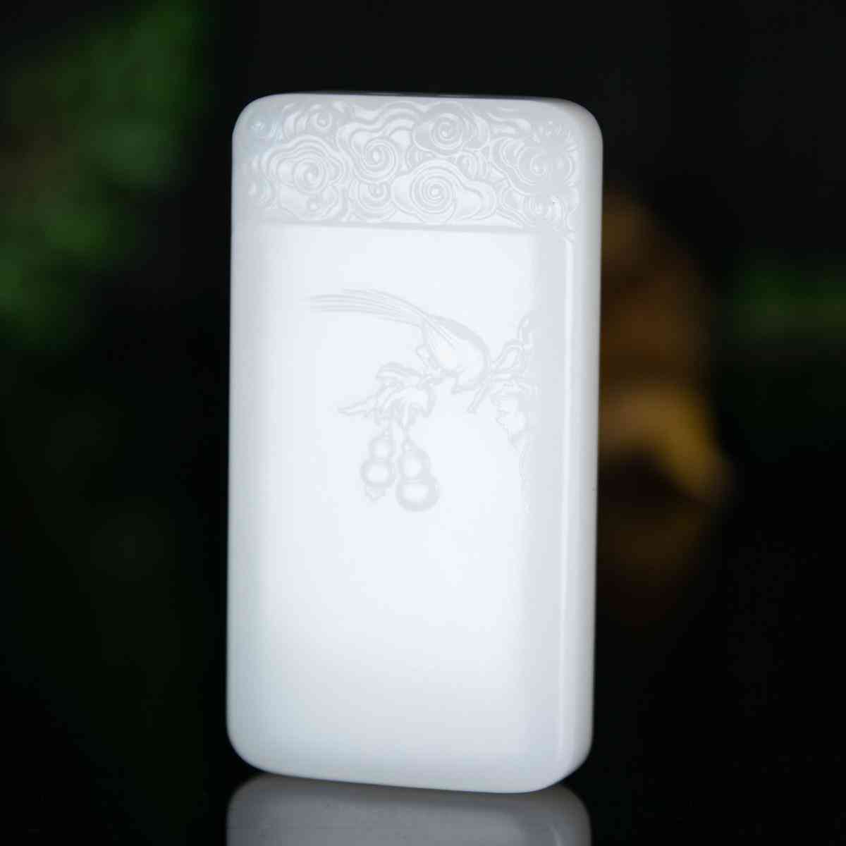 强光进行手电筒直射在和田玉的表面,和田玉内显透光性,且光韵为相对系统聚光,而直射在石英岩、大理岩、玻璃材料混合金属制品理论上光韵则相对高度散光。直射的照玉石强光手电筒慢慢平移时,可鉴定玉石质地结构是否均匀。手电筒平移时,玉石的透