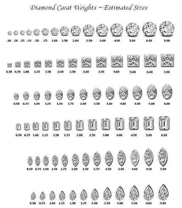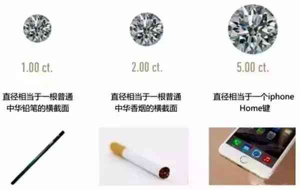 需要注意的是由于钻石实际切工比例的影响,以上尺寸仅仅是理想状态切割下不同克拉重量钻石的指示性测量,并非钻石重量越大直径就会越大!