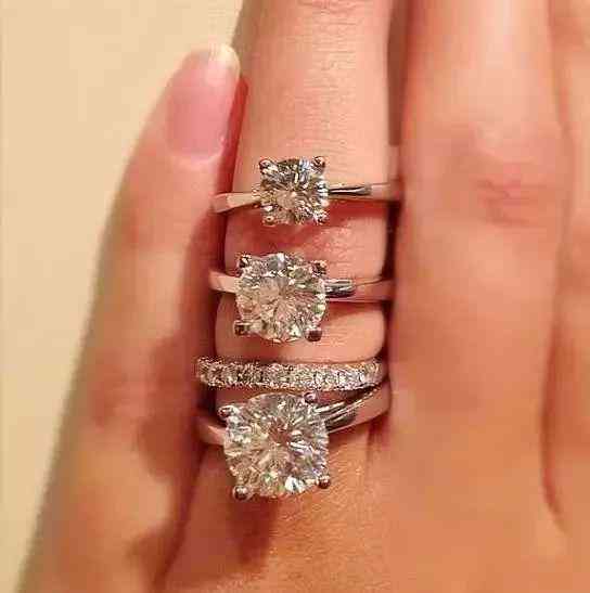 钻戒款式不同,同样大小的钻石的视觉效果可能也会不一样,所以对于经济条件限制,又想要大钻石的朋友,可以选择用镶嵌款式弥补。小钻豪镶,简单镶嵌的大钻,可以造成相当巨大的视觉感差异。并不是一定要大颗粒才能有土豪的效果。