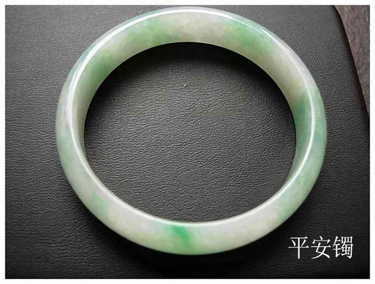 这款飘绿花的手镯很清新,手镯是由两种颜色搭配而成的,外环以白色为主,在白色的底色上飘了几处阳绿色,每一部分颜色的点缀都很有特点,这样的设计看上去非常有吸引力。而且这种款式的手镯还有着很好的名字,叫平安镯,戴在手臂不仅能起到很好的修饰作用,而且玉石还能保平安。