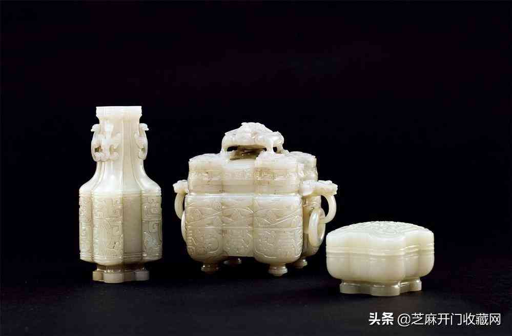 清乾隆青白玉雕螭龙纹炉瓶盒三式,估价:RMB 1,500,000 ~ 1,800,000,成交价: RMB 1,725,000