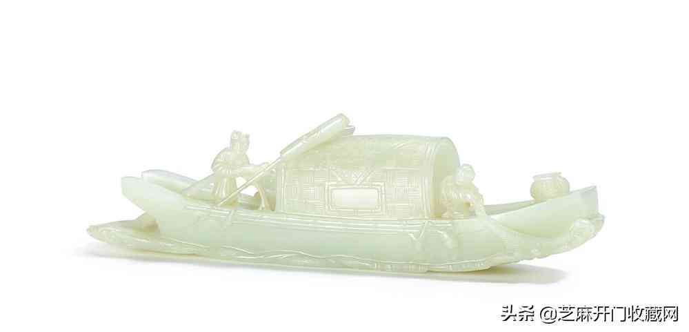 清乾隆青白玉雕渔舟摆件,尺寸:19厘米,估价:HKD 900,000 ~ 1,200,000,成交价: HKD 1,375,000