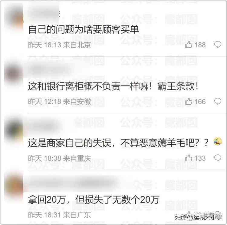别说4万买了20万的黄金,就算是4000买了20万的黄金。那也是你们自己明码标价的,也得人,没有规矩不成方圆。既然是你们自己的错误,那就得自己承担。什么叫明码标价,这如果不算正常购买行为,那算什么?商家来这样的担当都没有,还能指望这样的品牌有什么信誉?