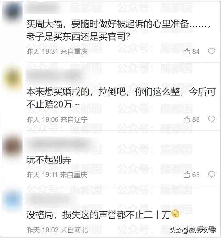 相当多的网友认为周大福这波是赢了20万,输了无数个潜在的20万客户: