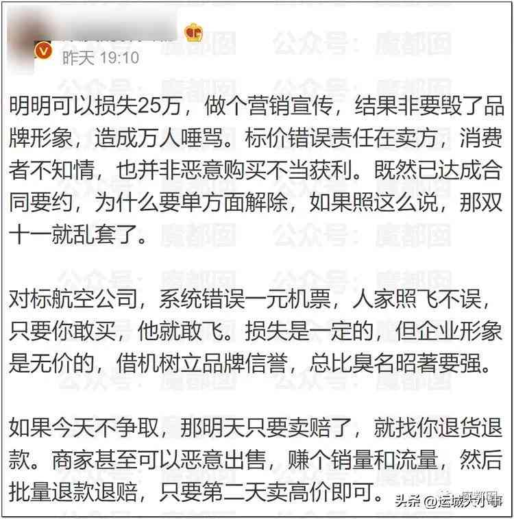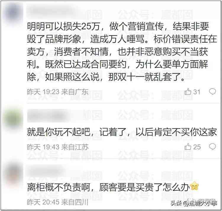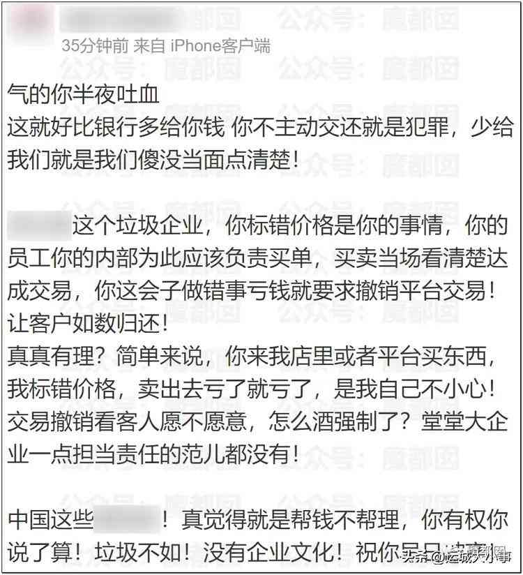 这事情其实给整个市场都开了一个很不好的头……意思就是商家可以随意利用自己的价格来愚弄消费者,比如我开头设置一个低价,把流量都吸过来,然后一个一个退单说价格标错了(某美国.手机品牌就这么干过),一分钱不花赚了巨大的流量,最终倒霉的还是消费者。