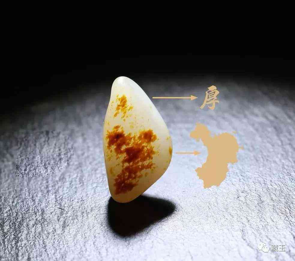 原来,这是一个特色料,籽料上部皮色像“厚”字,下部皮色像“中国地图”,因此持有人为其取名“中国地图厚德载物”。