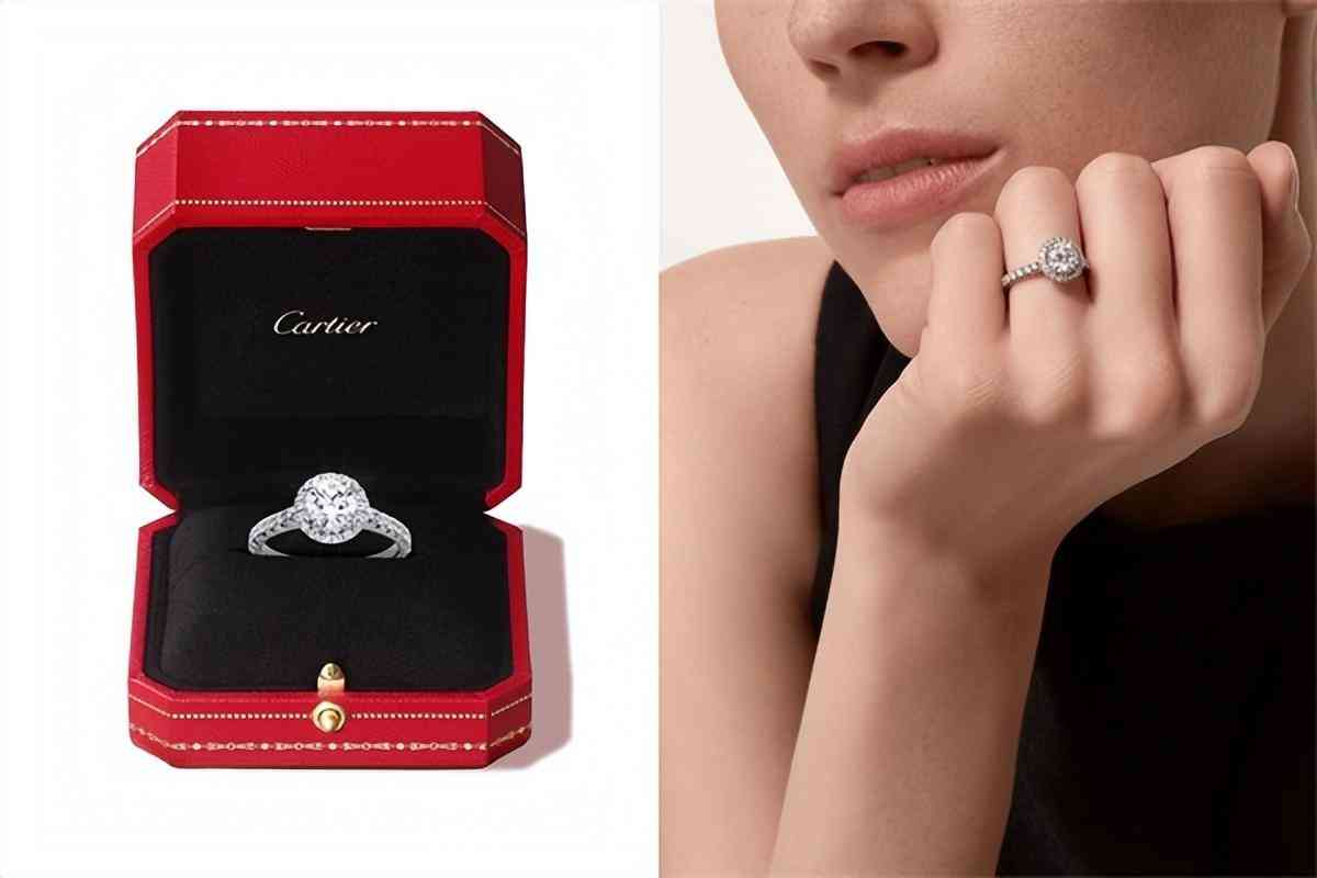 这款钻戒自1895年问世就成为了卡地亚的经典,戒指线条利落,其设计体现卡地亚对简约纯粹的不懈追求,戒圈采取铺镶或包镶方式镶嵌钻石,凸显钻石夺目光芒,四枚小巧镶爪固定璀璨闪耀的单颗钻石,钻石菱纹与镶爪完美对齐,简洁精致的整体设计,造就「镜面抛光」以增强光线折射效果,让钻石戒指看起来更为璀璨。